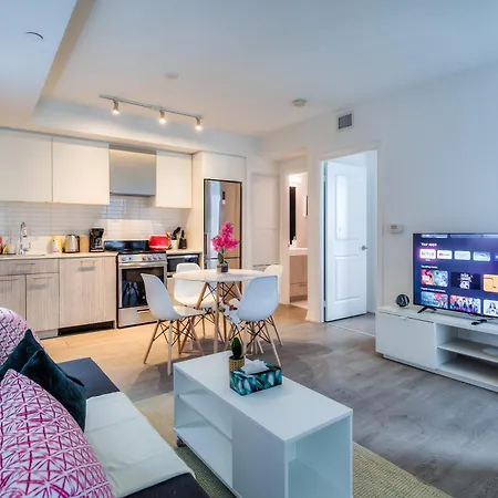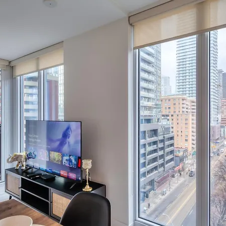 Il Designer Suites Downtown Toronto si trova a circa 10 minuti a piedi dalla Chiesa della Santissima Trinità e a una distanza di 1 km dalla stazione della metropolitana di Dundas. L'appartamento vanta un patio e un parcheggio privato nella struttura.